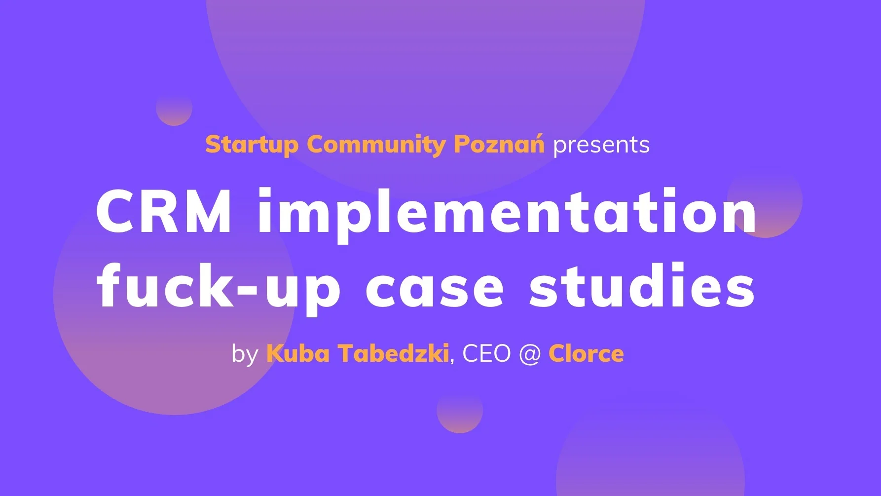 Founders, professionals, and enthusiasts! At some point, every successful company is reaching a moment when managing the sales funnel becomes a challenge. Information behind phone calls, emails, and other sales related activities allow managers to optimize their processes and increase the probability of winning the next deal. Kuba Tabedzki, SCP's next speaker is a CRM (Customer Relationship Management) expert with 10+ years of experience in the industry. His presentation will tackle mainly the aspects of the implementation of CRM, and the challenges behind it. In his presentation, Kuba will explain: @ why you should think about CRM when starting your business @ what kind of data should be gathered @ how CRM can grow with your business @ what are the most common mistakes during the implementation @ consequences of unsuccessful/far-from-optimal implementation We hope to see you again on Thursday, 7th March at 6 PM, @ Plusjeden Poznan. As always, after the main part, we'll visit a nice place nearby to mingle and exchange experiences. 18:00 - 18:30 - Community: Who is Who and What do you do? 18:30 - 20:15 - "CRM implementation secret sauce - fuck-up case studies” - Kuba Tabedzki, Clorce (https://clorce.com/) 20:15 - .......... Networking and mingle time @NaPiwek Pub. The event will be held in English and is free for everyone - by people for people. No profit, no sponsors, no hidden agenda, just people with common passions. See you soon! Startup Community Poznań (SCP) https://www.facebook.com/groups/StartupPoznan/