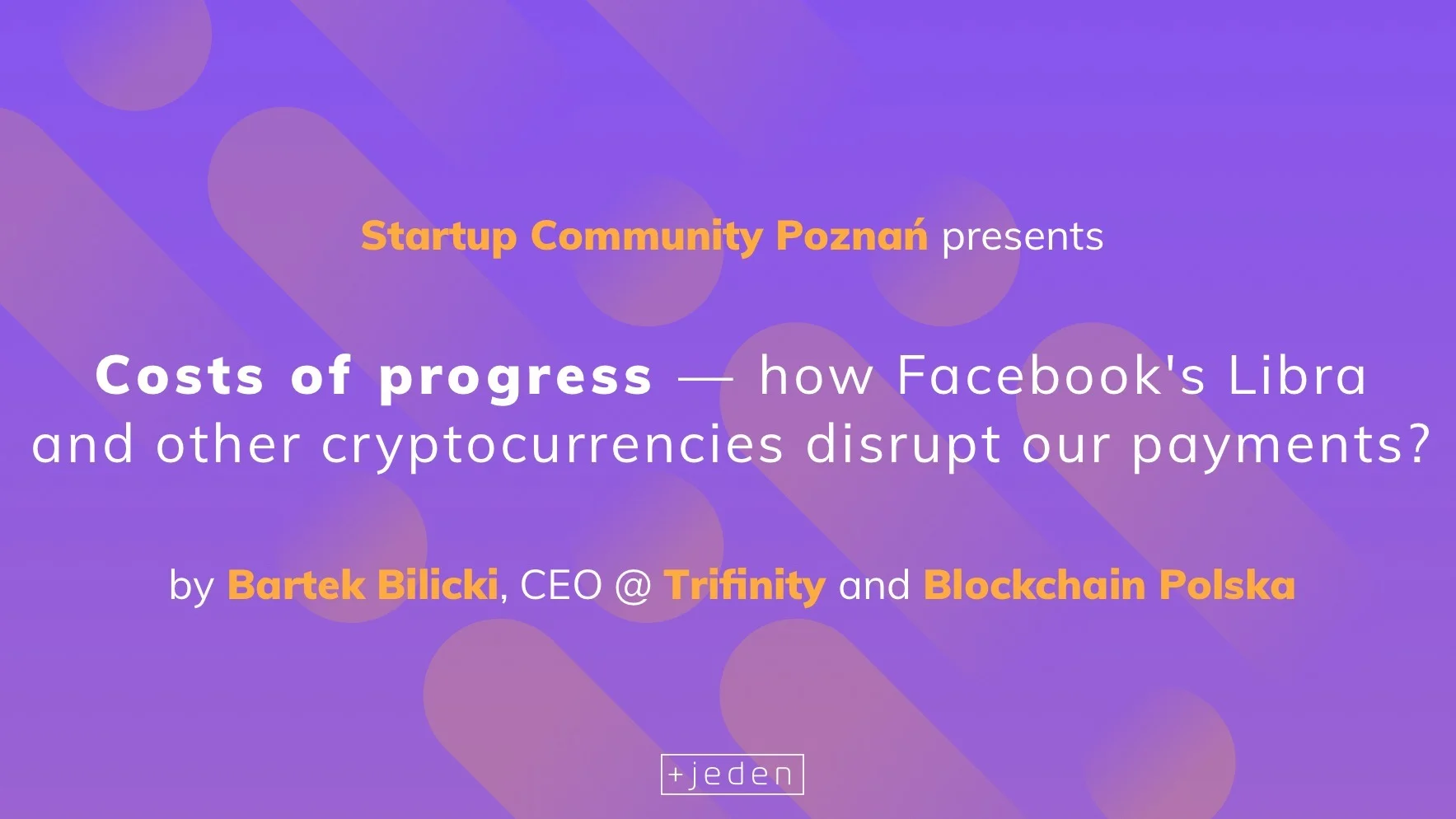 Founders, professionals, and enthusiasts! It's been a while since our last Meetup took place, but we're coming back with our batteries loaded to maximum after the summer break. This time we'll be hitting the topics of economy, cryptocurrencies, and future, thanks to Bartek Bilicki, CEO of Trifinity and Blockchain Polska. In his presentation, "Costs of progress: how Facebook's Libra and other cryptocurrencies disrupt our payments?" Bartek will try to answer some of the most challenging questions that modern society is facing. Are the cryptocurrencies safe? Will they dominate the way how we pay for products and services? What about our salaries and traditional currencies that we use today? Thanks to his professional experience and private interest, Bartek is one of the people willing to seek for answers. We hope that you will join us during the upcoming Meetup, which is about to take place on Thursday, 05.09.2019 at 6 PM. This time the main and the networking part will take place at Ułan Browar, Wyspiańskiego 26, Poznań. We hope to see you after a long, long break! 18:00 - 18:30 - Community: Who is Who and What do you do? 18:30 - 19:15 - "Costs of progress: how Facebook's Libra and other cryptocurrencies disrupt our payments?” Bartek Bilicki, Trifinity, Blockchain Polska 19:15 - .......... Networking and mingle time @Ułan Browar