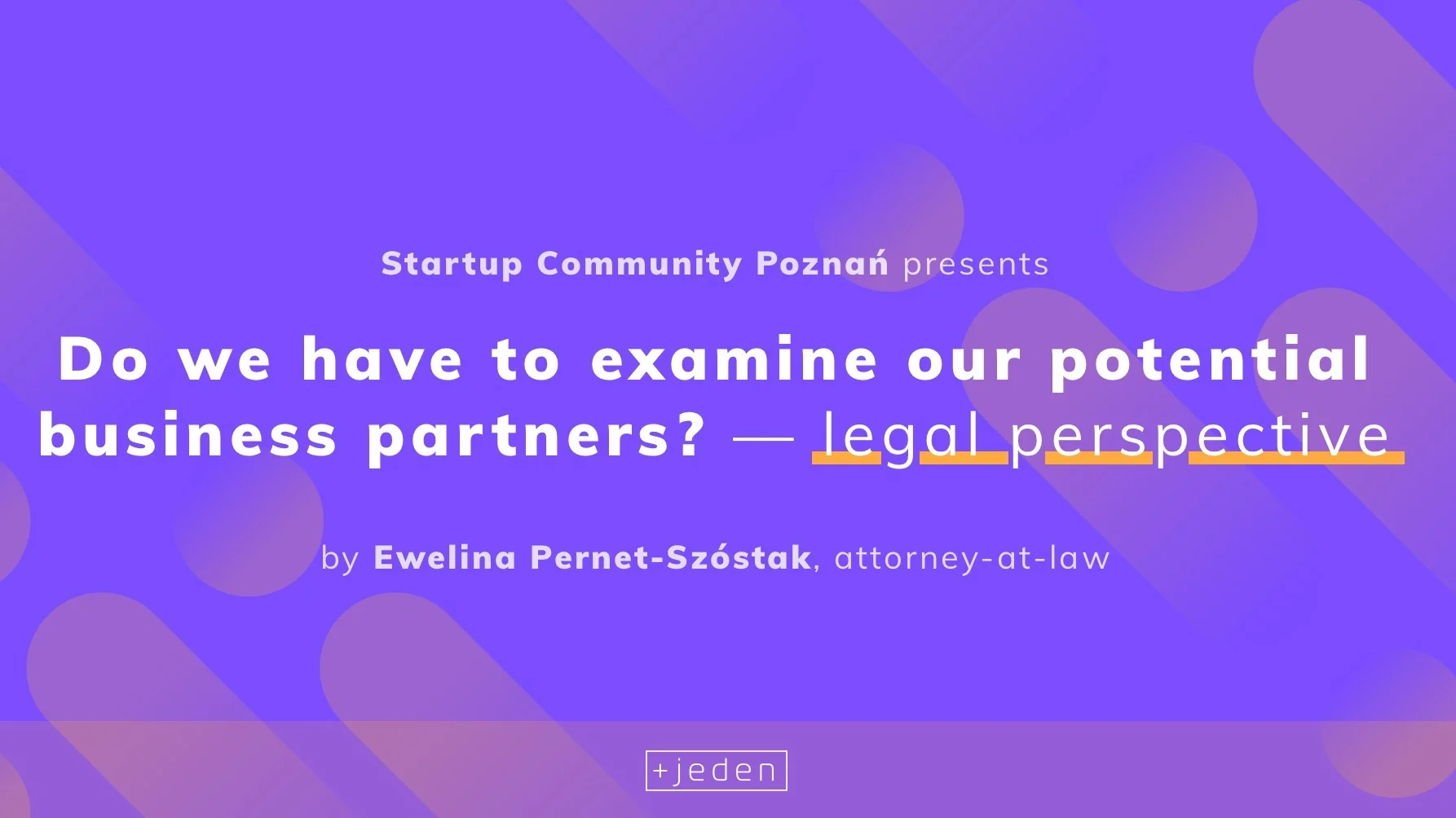 Founders, professionals, and enthusiasts! We hope that you enjoyed the October workshops as much as we did! In December, we would like to come back to you with a great portion of a legal-related knowledge, delivered by Ewelina Pernet-Szóstak. Ewelina Pernet-Szóstak is attorney-at-law and expert in insolvency proceedings, helping clients on her 15 years experience as a lawyer during legal actions, settlements, and negotiations. She believes that mutual trust is the core part of each business relationship, another part is being well-informed. The topic of their presentation will be: "Do we have to examine our potential business partners - legal perspective" Ewelina will tackle such topics as immobilities, bankruptcy, National Court Register and other Ewelina will present you how to use legal information and check the financial condition of your: customers, contractors, and business partners, how with your own skills make legal due – diligence and make cooperation safer. The legal aspects are very important for SMBies as well as small enterprises, we hope that the oncoming meetup will be beneficial for experienced professionals as well as starters, taking their baby steps in the world of business ;) Traditionally, we plan to begin with a quick introduction (around 30 mins) and end up at one of the nearby located premises ;) 18:00 - 18:30 - Community: Who is Who and What do you do? 18:30 - 20:15 - "Do we have to examine our potential business partners - legal perspective." - Ewelina Pernet-Szóstak 20:15 - .......... Networking and mingle time. The event will be in English and is free, by people for people. No profit, no sponsors, no hidden agenda, just people with common passions. See you soon! SCP - Startup Community Poznań https://www.facebook.com/groups/StartupPoznan/ https://www.meetup.com/startupcommunitypoznan/ https://twitter.com/StartupPoznan https://www.linkedin.com/company/startup-community-poznan-scp/