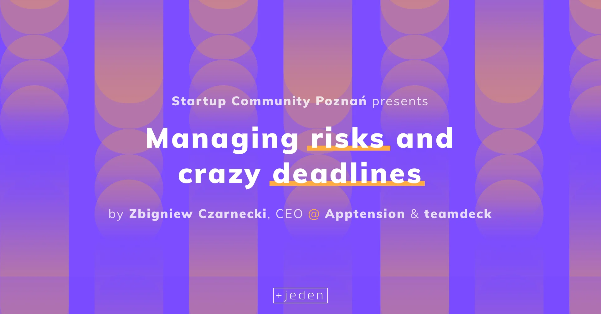 Founders, professionals, and enthusiasts! One of the greatest football managers - Arsene Wenger, recently admitted that his job is like an addiction - he needs to be tested. Our next speaker seems to have a similar attitude. The topic of his presentation will be strictly connected with the pressure associated with working with the team and anticipating the needs. Let him explain in his own words; “I had a chance to work on high-stakes, high-risk projects for global brands. They tend to test me and my team’s capability to endure long working hours. I will share my tips on how to survive (and thrive) in such an environment (and win the world’s biggest hackathon in the process).” Zbigniew Czarnecki is a CEO of Poznań-based IT companies: Apptension & Teamdeck, but also Lead Developer at international marketing agency Unit 9. He's combining entrepreneurial spirit with purely engineering acumen. "Managing risks and crazy deadlines" is the topic of the 15th SCP Meetup taking place at Plus Jeden Poznań (Za Bramką Str 1, Poznań). Zbyszek is a practitioner, happy to share his knowledge & will join us for the mingle part at Papierowka Restaurant, right after the main part. The event takes place on Thursday, 14th June at 6 PM. Seeya!