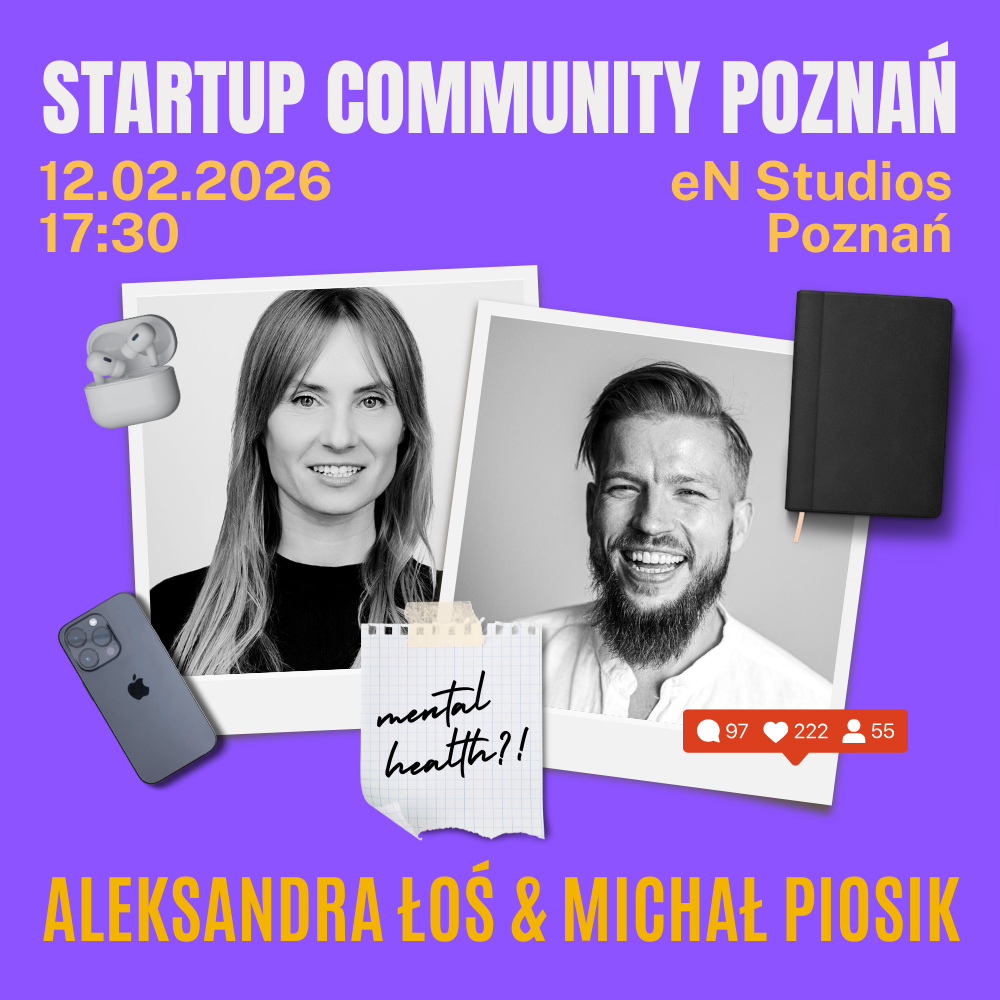 Kto będzie z nami? Michał Piosik – Współzałożyciel @foodtech.ac | Partner Zarządzający @AC/VC Foodtech Impact Fund | Współzałożyciel i Chief Happiness Officer @Tro.sk Michał wystąpi z prelekcją: „Dlaczego pogoni za szczęściem wpędza nas w depresję?”: - Historia założyciela o tym, jak osiągnął wszystko, a skończył z depresją. - Dlaczego czujemy się nieszczęśliwi, żyjąc w świecie, który nigdy nie był bogatszy? - Co naprawdę sprawi, że będziemy szczęśliwi, spełnieni i spokojni? Odkryjmy to razem (w końcu!). Aleksandra Łoś – Anioł Biznesu @Soundoshi | Współzałożycielka i CEO @TrueMe | Senior Solutions Consultant @Espeo Software Aleksandra to seryjna założycielka i anioł biznesu, działająca na styku technologii, ludzkich zachowań i regulacji emocjonalnej. Jest również certyfikowaną nauczycielką jogi Kundalini i coacherką wzmacniania (empowerment), od lat skupiającą się na komunikacji jako kluczowej umiejętności przywódczej w środowiskach o wysokiej presji. Obecnie rozwija protokoły dla agentów AI, zaprojektowane do interakcji z ludźmi w sposób inteligentny emocjonalnie i bezpieczny psychologicznie. Poprowadzi sesję: „Najbardziej niedoceniana przewaga (moat) startupu: Samoregulacja”, podczas której omówi (w praktyce): - Wzrost Twojego startupu jest strukturalnie ograniczony przez wydolność Twojego układu nerwowego. - Jak stres po cichu zmienia Twoje decyzje, podejście do ryzyka i styl przywództwa? - Prosty model samoregulacji, który możesz zastosować natychmiast. Zarezerwuj miejsce i spotkajmy się 12 lutego w przestrzeni eNStudios (Głogowska 216)!