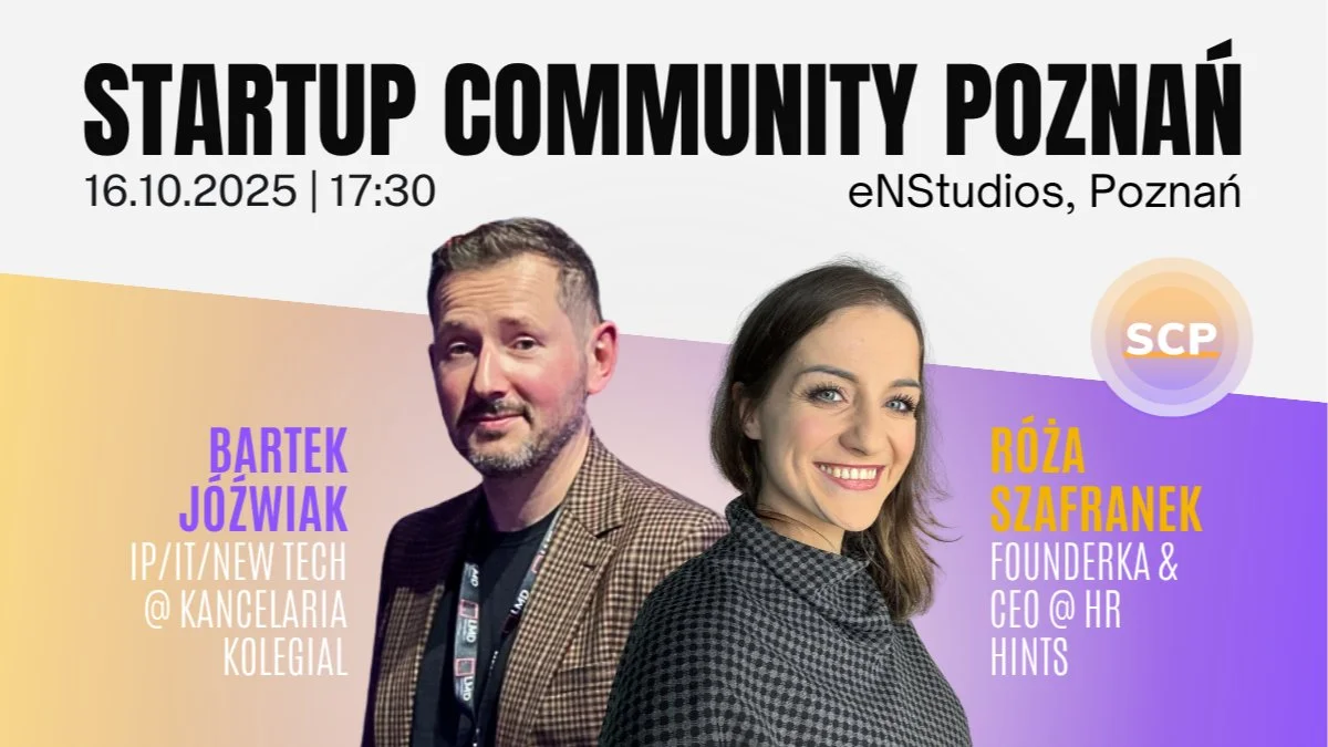 🚀 SCP Meetup #41 (PL): Lekcje dla startupu od Róży Szafranek + IP w praktyce + najlepszy networking dla startupów w Poznaniu [FREE] Startup Community Poznań to społeczność founderów, product-builderów i osób wspierających innowacje. Niezależnie, czy masz MVP, pierwszych klientów czy dopiero szukasz pomysłu – wyjdziesz z konkretnymi wskazówkami i nowymi kontaktami. Co zyskasz? Praktyczne lekcje „spod maski” – co działa, a co nie, gdy rośniesz, rekrutujesz i budujesz firmę. 5 prostych zasad IP (czego nie robić i jak zabezpieczyć się w codziennych działaniach). Dołączysz do poznańskiej społeczności startupów – naturalny i efektywny networking z wartościowymi ludźmi. Język: polski (every other event is held in English). Networking: na miejscu. Miejsca: ograniczona pula – zapisz się, aby zarezerwować miejsce! Koszt: 0 zł. Zapisz się i wpadnij! Zadbamy o tempo, konkret i ludzi wartych Poznania. 🚀