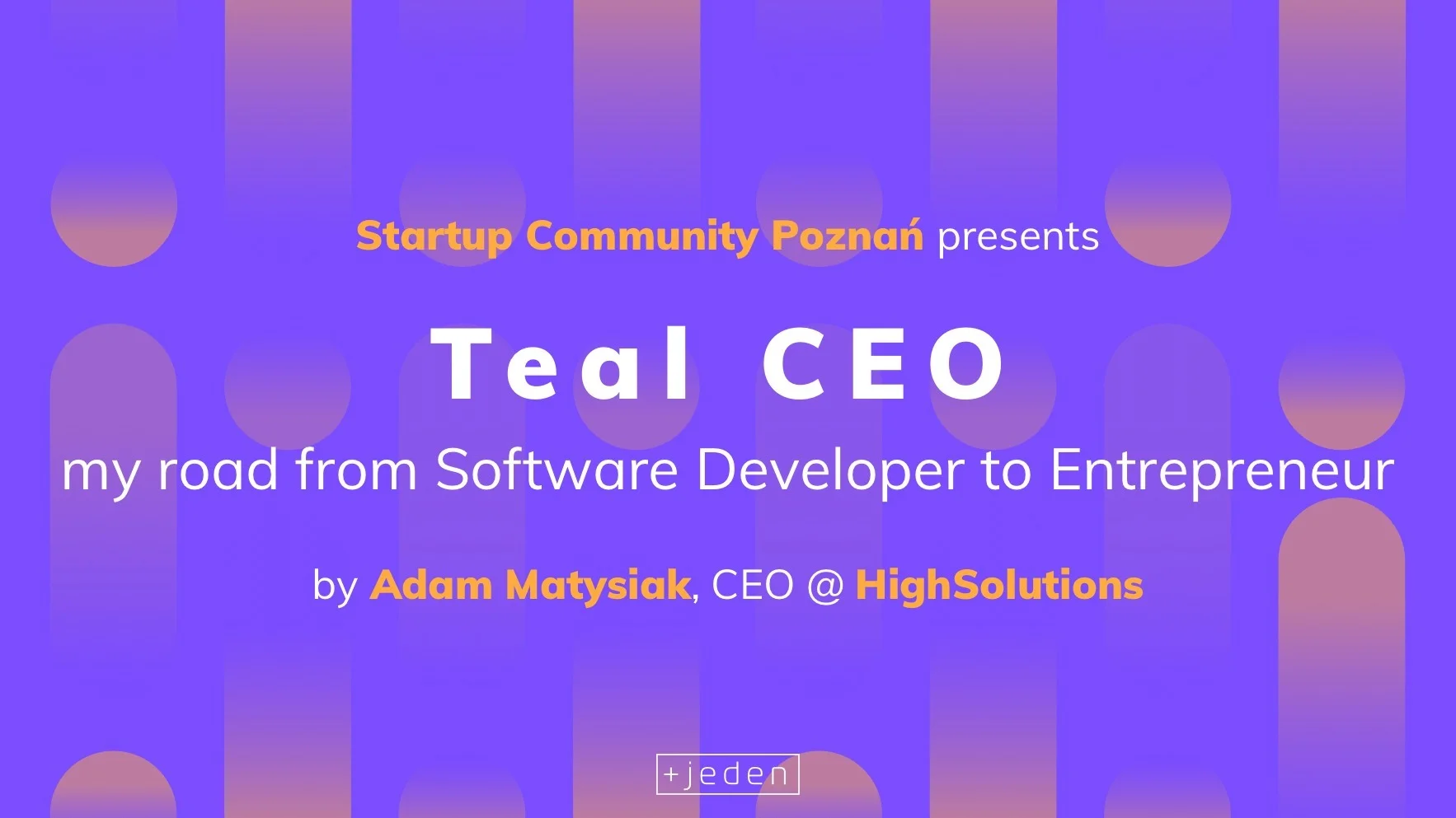 Founders, professionals, and enthusiasts! Together with our speakers, we tend to tackle various aspects of modern entrepreneurship. The stories shared by startuppers of Poznan cover topics like technology, business, legal. This time, we'd like to introduce Adam Matysiak, a man of many roles, encouraging others not to limit themselves with one role only. Adam is a CEO of Poznań based software house, HighSolutions, a lecturer at Wyższa Szkoła Bankowa and an advocate of Teal organization, educating others at "Turkusowy Prezes" video blog. Let him introduce himself with his own words: "My story begins from the moment when I put my fingers on the keyboard at the age of 4, later become a self-thought programmer, finally - a successful founder and businessman" Topics that Adam tends to cover: @ My way to be a professional developer @ My startups' adventures @ How I became an entrepreneur @ All of my roles as a business owner @ How I shifted from a manager into a leader @ How my personal growth accelerated (speeches, video blog, interviews, articles, conducting lessons on a university) @ Lessons learned as a developer, manager, entrepreneur, video blogger We hope to see you again on Wednesday, 10th April at 6 PM, @ Plusjeden Poznan. As always, after the main part, we'll visit a nice place nearby to mingle and exchange experiences. 18:00 - 18:30 - Community: Who is Who and What do you do? 18:30 - 20:15 - "Teal CEO - my road from Software Developer to Entrepreneur” - Adam Matysiak, HighSolutions 20:15 - .......... Networking and mingle time @NaPiwek Pub. The event will be held in English and is free for everyone - by people for people. No profit, no sponsors, no hidden agenda, just people with common passions. See you soon! Startup Community Poznań (SCP)